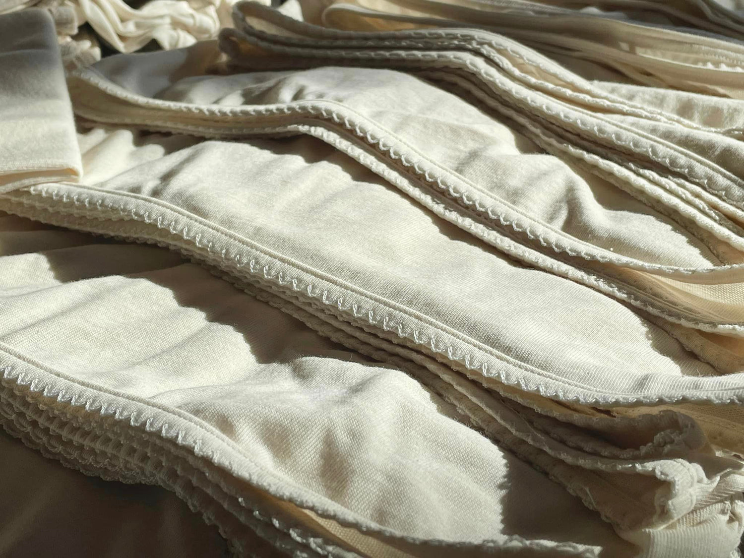 Tessuto realizzato con filati in cotone da agricoltura biologica certificati GOTS. Coltivato senza uso di fertilizzanti, erbicidi, pesticidi e defoglianti chimici. Tessuto naturale, non tinto, non trattato con prodotti chimici, naturalmente anallergico